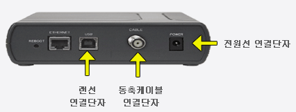 2. 정상적으로 연결되어 있는데도 인터넷접속이 안될때는 모뎀 후면의 전원 연결선을 분리 후 재연결 해주세요.